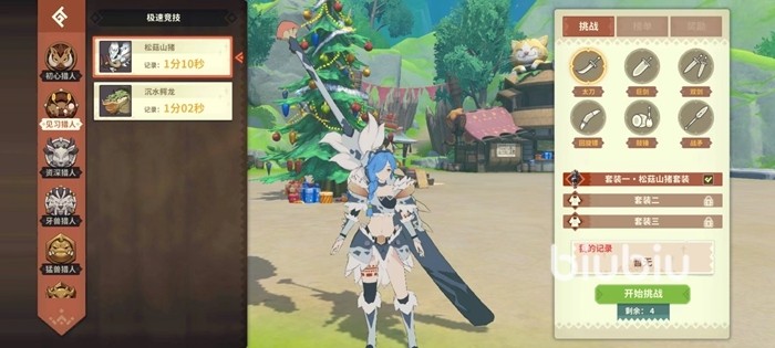 挑战时使用的武器,就是怪物特定材料的对应套装,比如螺巨蟹怪物对应的是螺居武器,那无论我们有没有自己制作这样武器,我们都可以使用该系类的武器,无论太刀、巨剑、双剑、回旋镖、鼓锤、战矛都是可以选择的。