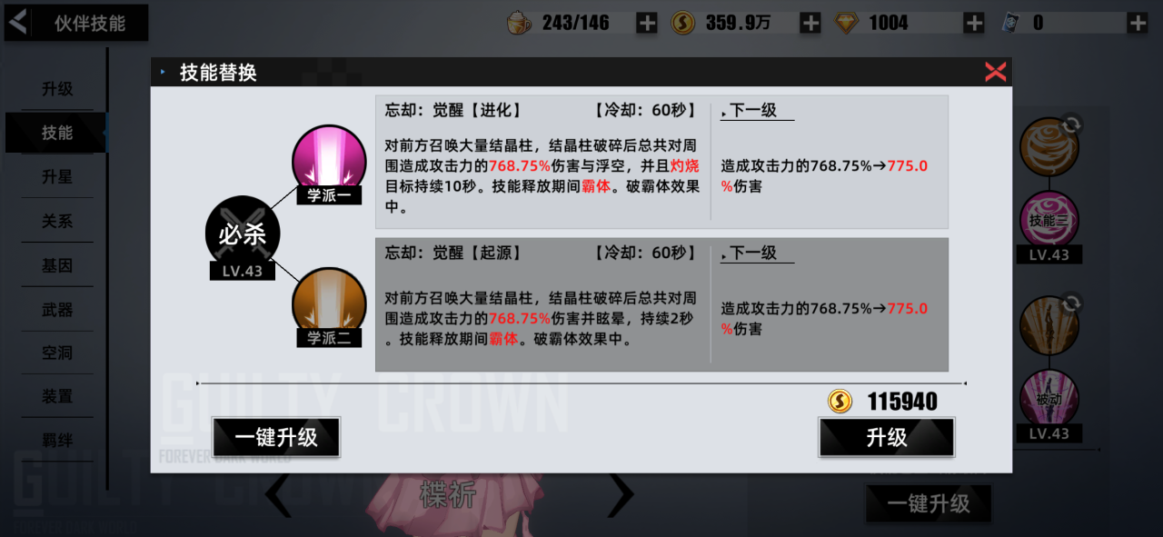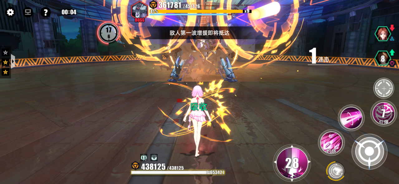 同时,玩家要不断强化楪祈的基因、融合空洞和升级装置,同时赠送楪祈礼物,进一步提高攻击力,这样连招技能会跟着水涨船高。