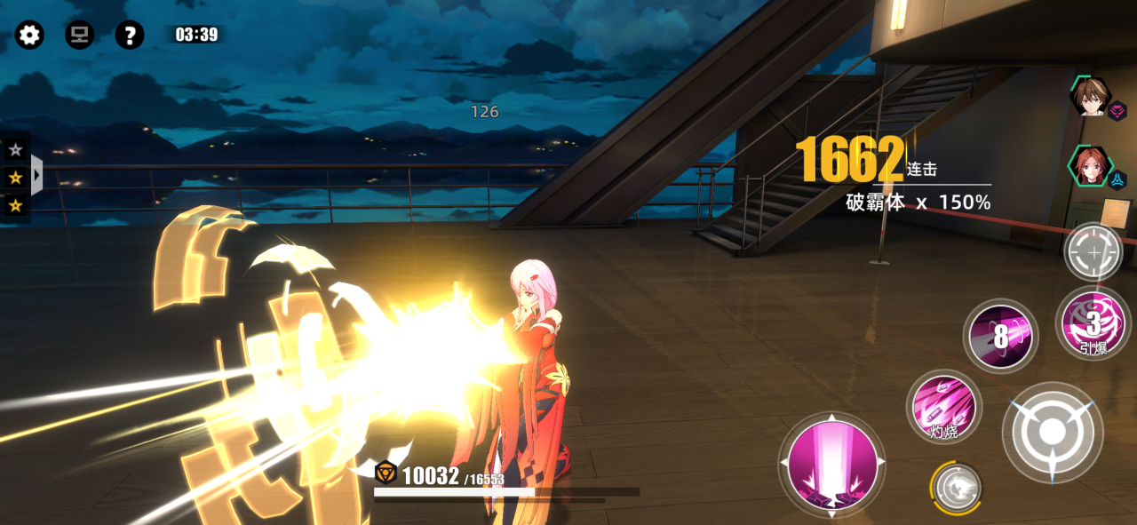 在实战中,楪祈要发挥连招的火力优势,首先要给敌方拉开距离,所以首先第一招发动一技能幽闭共鸣,在向后撤退的过程中向敌方发射八发子弹,并在剩下的两秒钟发射四发普通攻击,造成灼烧伤害。