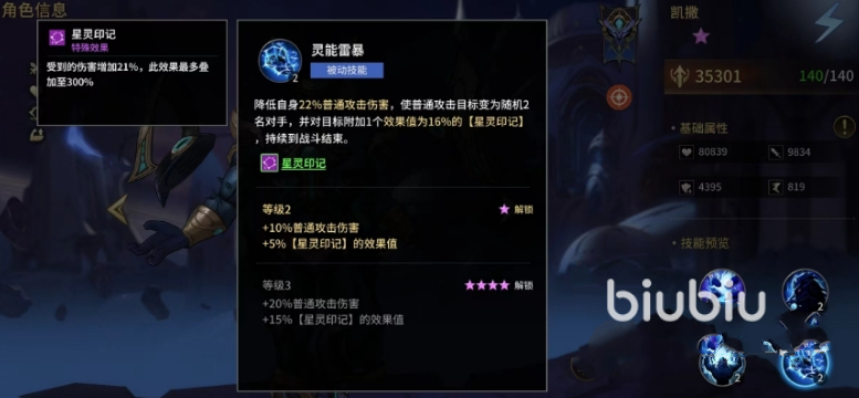 灵能雷暴:凯撒将雷霆力量汇聚在双手,创造出灵能雷暴。他通过小幅降低普通攻击伤害的方式,使目标变为随机两名敌方单位,并对他们施加【星灵印记】,这种印记能够让目标受到更多的伤害。这不仅增加了技能的覆盖面,也提高了其战术价值。同时,【星灵印记】的施加为队伍提供了额外的战斗优势,使得后续的攻击能够对标记的敌人造成更高的伤害。