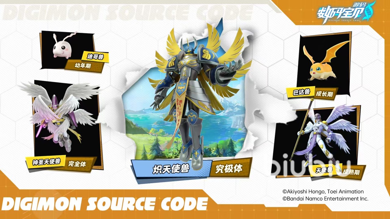 因为游戏保留了完整的进化链,所以大家必须知道炽天使兽前面究竟是怎么进化来的。最初的形态是迪哥兽,后续进化到巴达兽属于成长期,再后来进化到天使兽是属于成熟期,进化到神圣天使兽后属于完全体,其实神圣天使兽已经非常强势了,他经常以神官的形象出现,但是炽天使兽要比他更强一些。