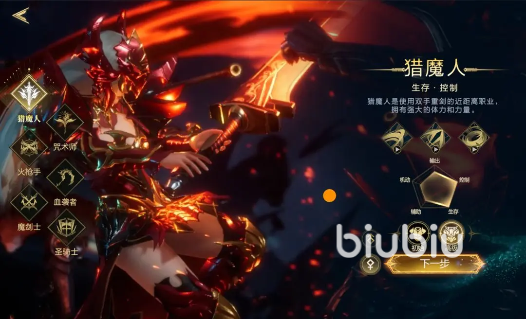 游戏当中设定了五大不同的职业,分别是猎魔人,咒术师,火枪手,血袭者,以及魔剑士。猎魔人是能够依赖自己生存能力比较强的职业,擅长控制,可以与敌人之间继续拧来回得到拉扯,而且输出能力也不低,但是在敏捷和辅助方面的效果稍显逊色;既想要输出能力,又能稳定的站在前排的话,那么猎魔人就比较值得选择。