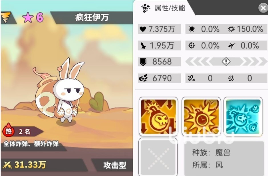 神格以加攻击为主,装备也是优先给风兔子,堆命中属性,小仙子和暗凌堆速度。至于角色星级,主力风兔、火发条、火龙星级越高越好,仙子7星,暗凌随意。