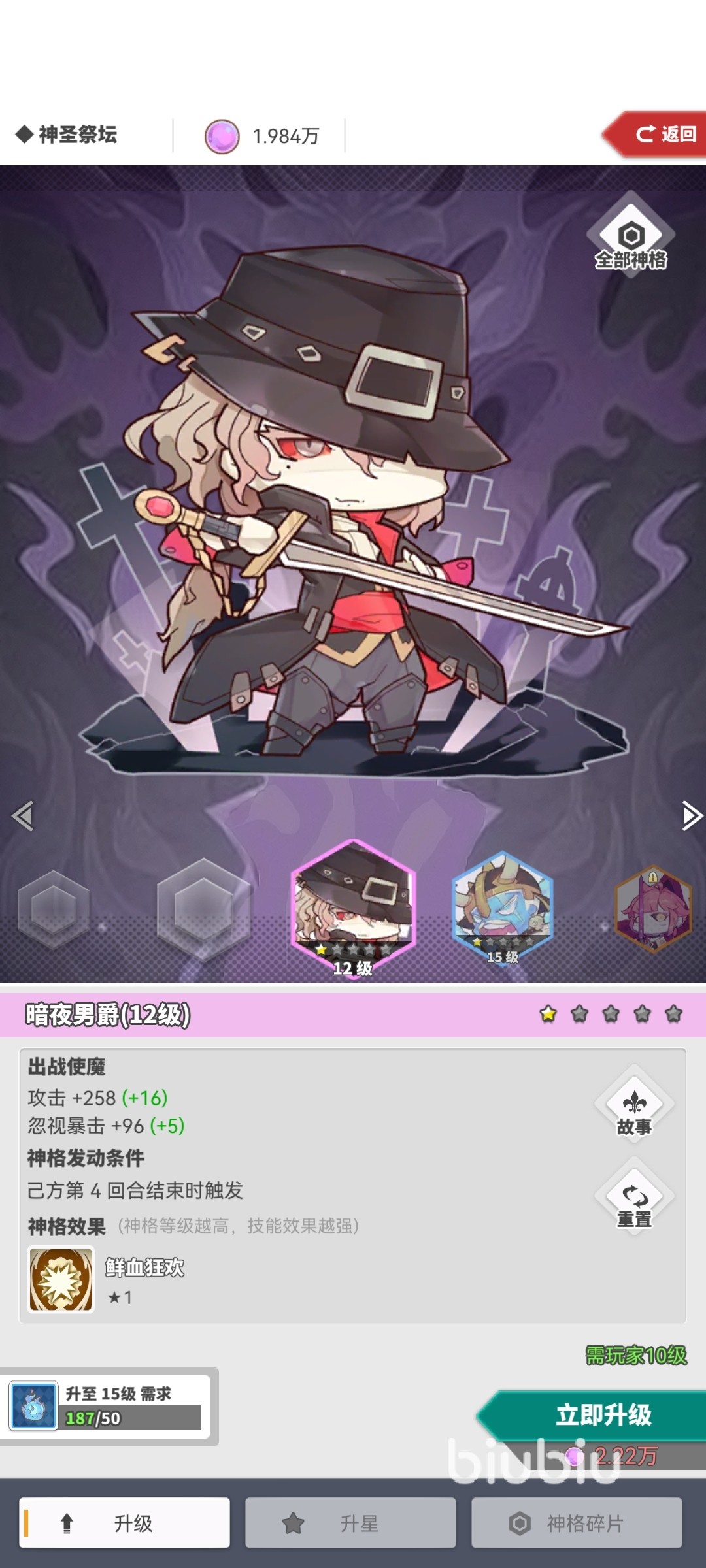 玩家还可以解锁神格这个方式提升实力,可以在主界面等待紫色石头的产出,或者用要是刷副本掉落材料,随着玩家等级提升能携带的神格会越来越多,战斗的时候不但提供属性上的提升还会给玩家技能帮助。