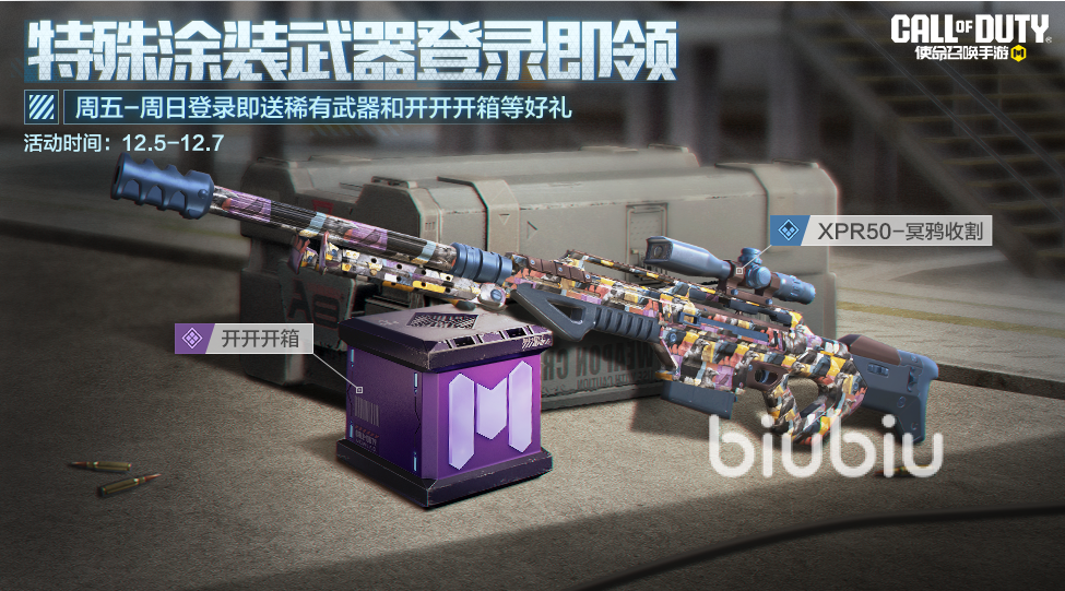 赛季末冲刺活动展开,参与多人对战排位赛就能获得稀有道具,Striker-冥鸦收割,还有S4不掉分卡、福利点券。”周末登录礼”也可参与,周六周日登录就可获得稀有级武器xpr50-冥鸦收割,以及开箱、福利点券。”周末对局礼”只要加入随机玩法模式,都能领取福利点券。