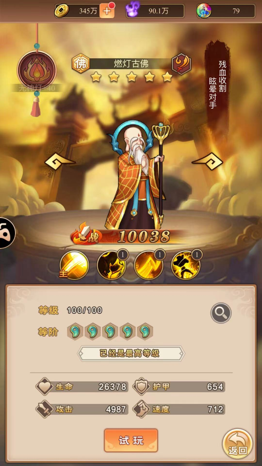 燃灯古佛和斗战胜佛级别到达最高等级后,混沌伤害值可以提升到60%或70%,可以通过混沌伤害对敌人造成多重伤害,可以快速完成挑战,获得最终挑战奖励。