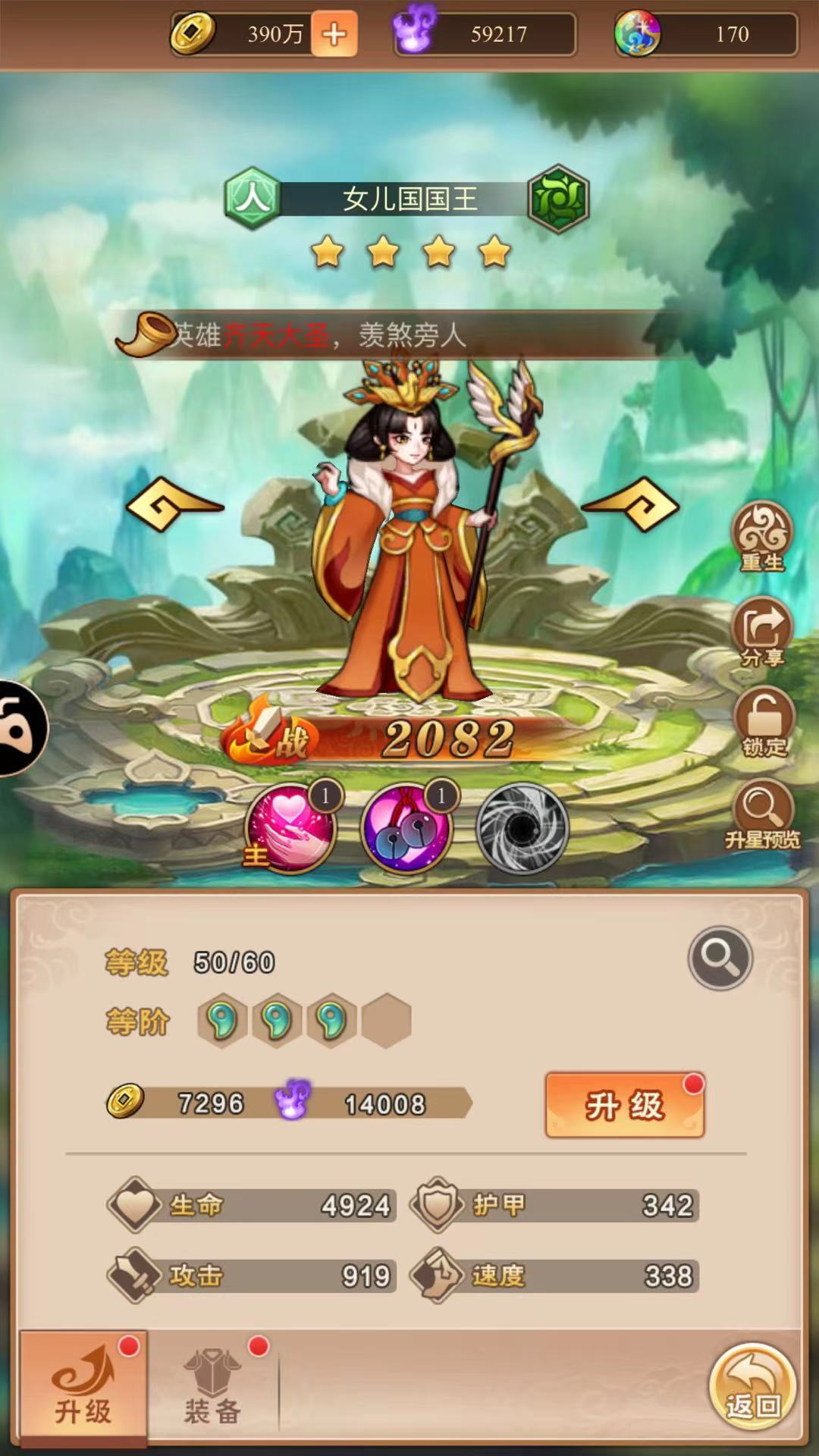 当拥有英雄后,可以在英雄页面中对英雄进行提升等级和进阶,可以提升英雄的属性值和战斗力,还可以通过装备进行一件穿戴更加提高战斗力。