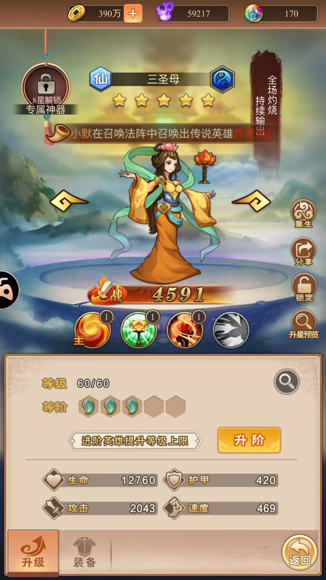 三圣母英雄,当玩家进入到挑战关卡后,初期可以少量的英雄挑战成功,当挑战成功后,即可获得各种不同的奖励,奖励中包括随机的五星英雄碎片,通过召唤后可以随机获得一位五星英雄,通过此种方式大概率可以获得三圣母英雄。