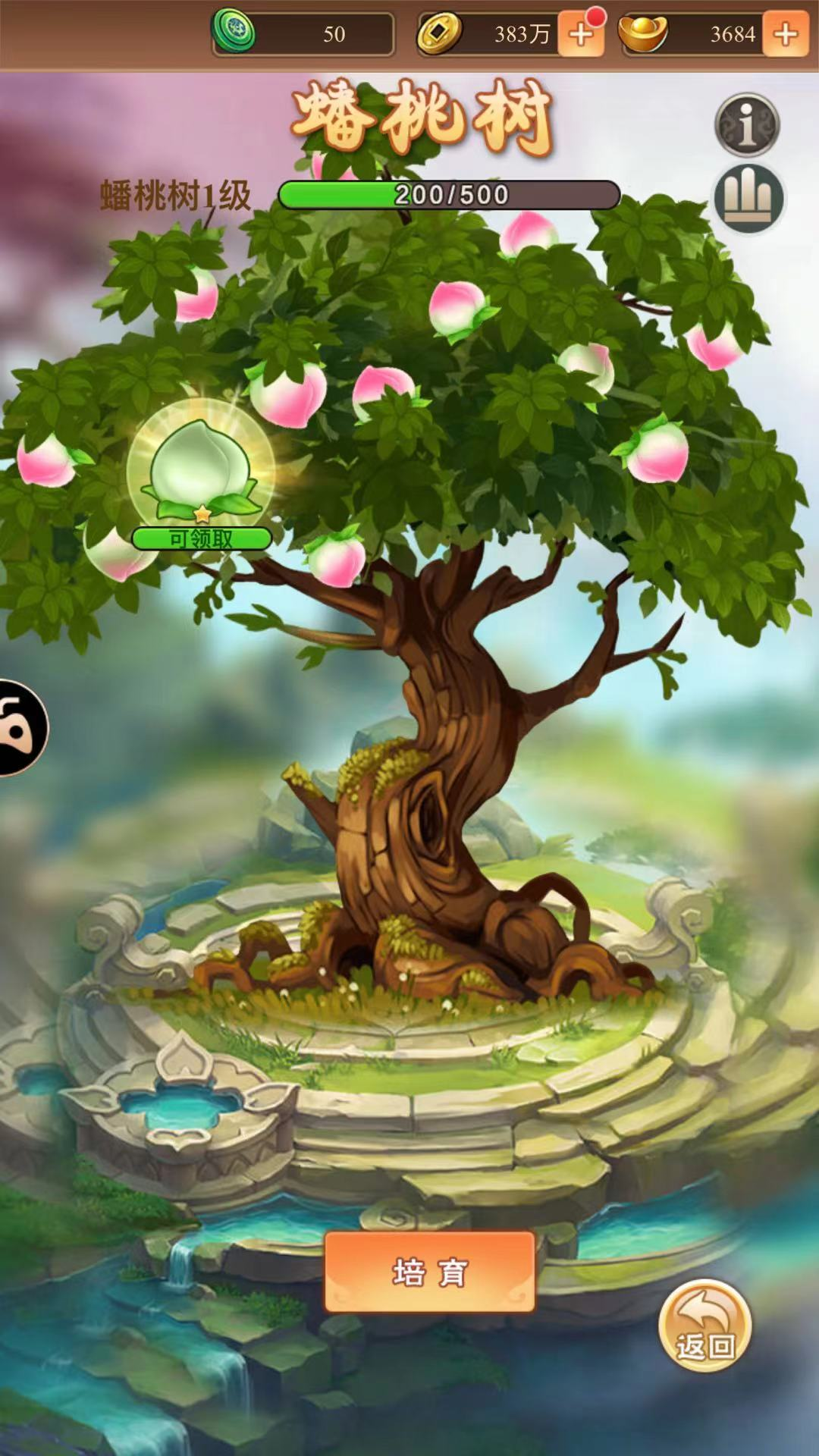 在蟠桃树场所中,通过领取蟠桃和培养蟠桃获得各种仙盟奖励,还可以培育蟠桃树,通过花费元宝进行提升,当蟠桃树的等级不断提高后,树上成熟的桃子的数量也会增多,收获时可以获得更多的奖励。