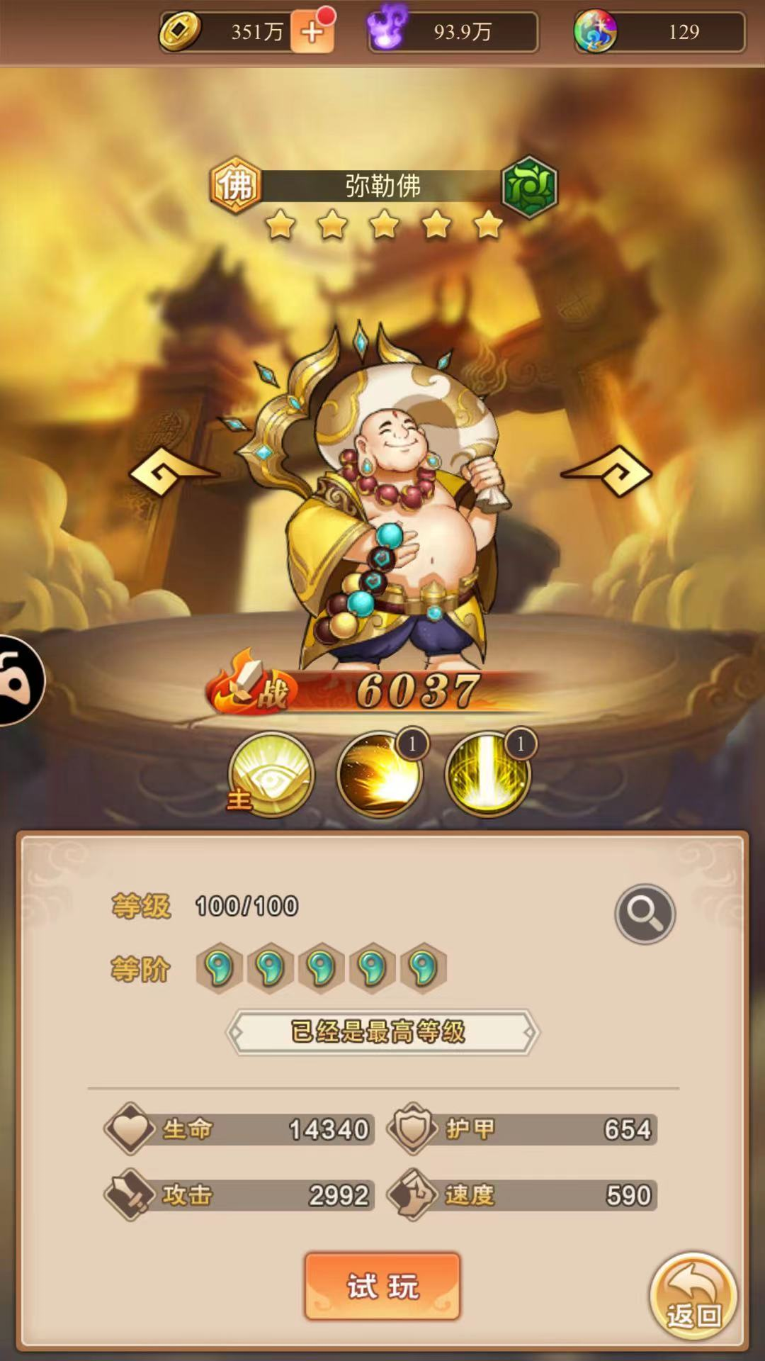 玩家进入游戏后可以看到包括妖,人,仙,魔,佛类型的英雄。在这些阵营中首个推荐的是佛阵营。
