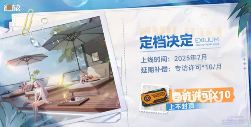 新版本的自选卡池首次必定出自己选定的角色,此外在错位锚定版本7月左右还将会上线一个全新玩法,虽然目前还没有具体内容公布,但只要延期上线,每延期一个月大家就会获得10专访许可。