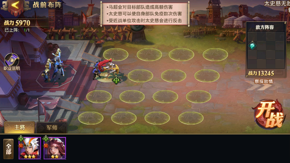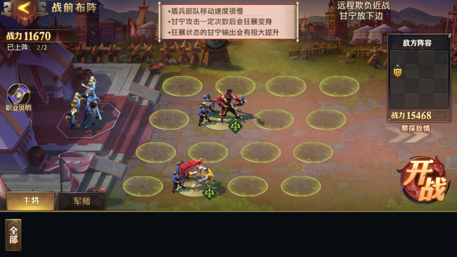 2、上阵张邰和贾诩就可以了,位置选择在第二行。