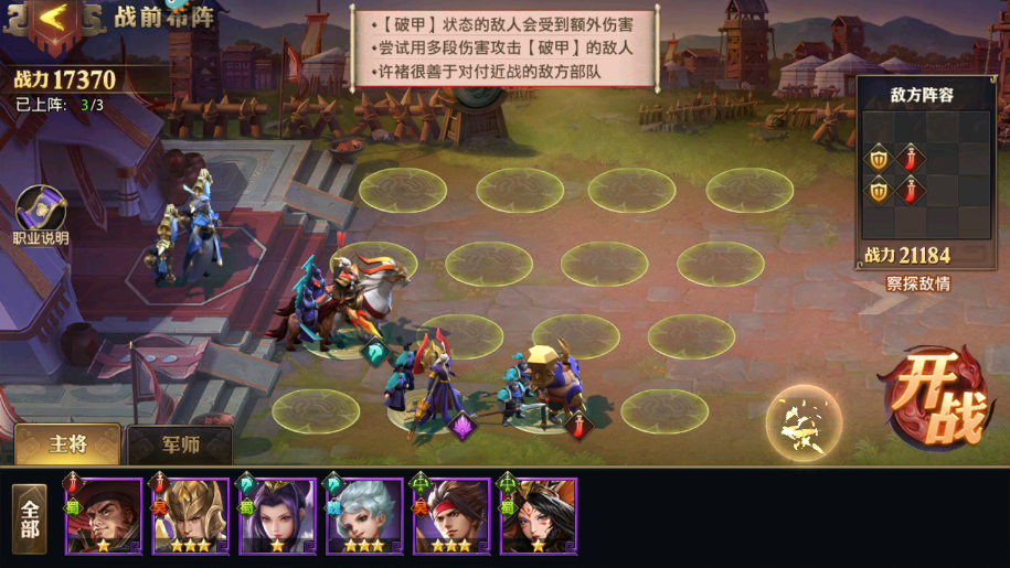 2、已经给了大家提示要用破甲,因此公孙瓒是必须要有的,按照这个位置摆放就行。