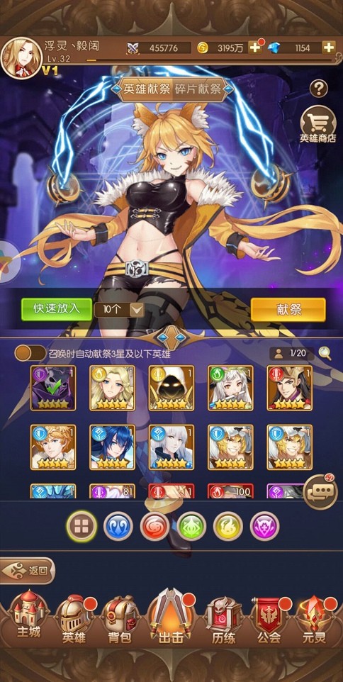 在游戏中,点击主页的大厅,找到英雄祭坛选项,就能够进行英雄的分解,小编建议在分解英雄的时候,稍微看一下,每种属性英雄留5个,因为可以在融合祭坛种进行升星。