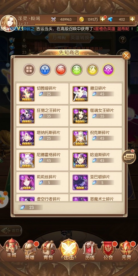 另外如果玩家不知道哪些英雄值得培养,都可以去先知商店中观察一下,一般兑换需要的水晶数量多的英雄都是值得培养的,不过不太好获取,另外这边小编推荐光系的艾露恩,这个英雄有活动会送的,非常强力的一个英雄,在输出方面不低于米迦勒,由于获取难度比较大,可能不太好升星,但是如果有条件的话,小编建议优先培养。
