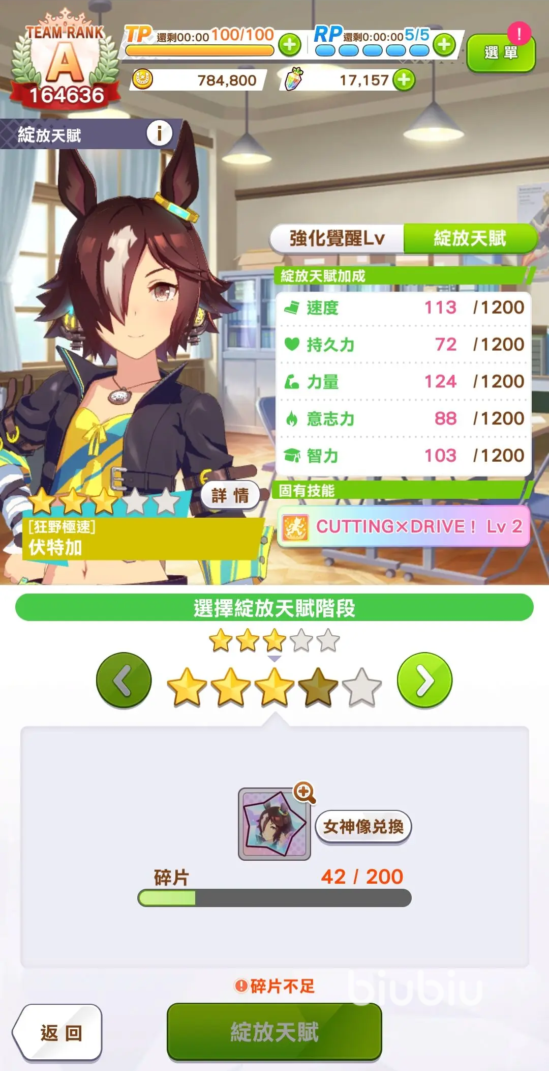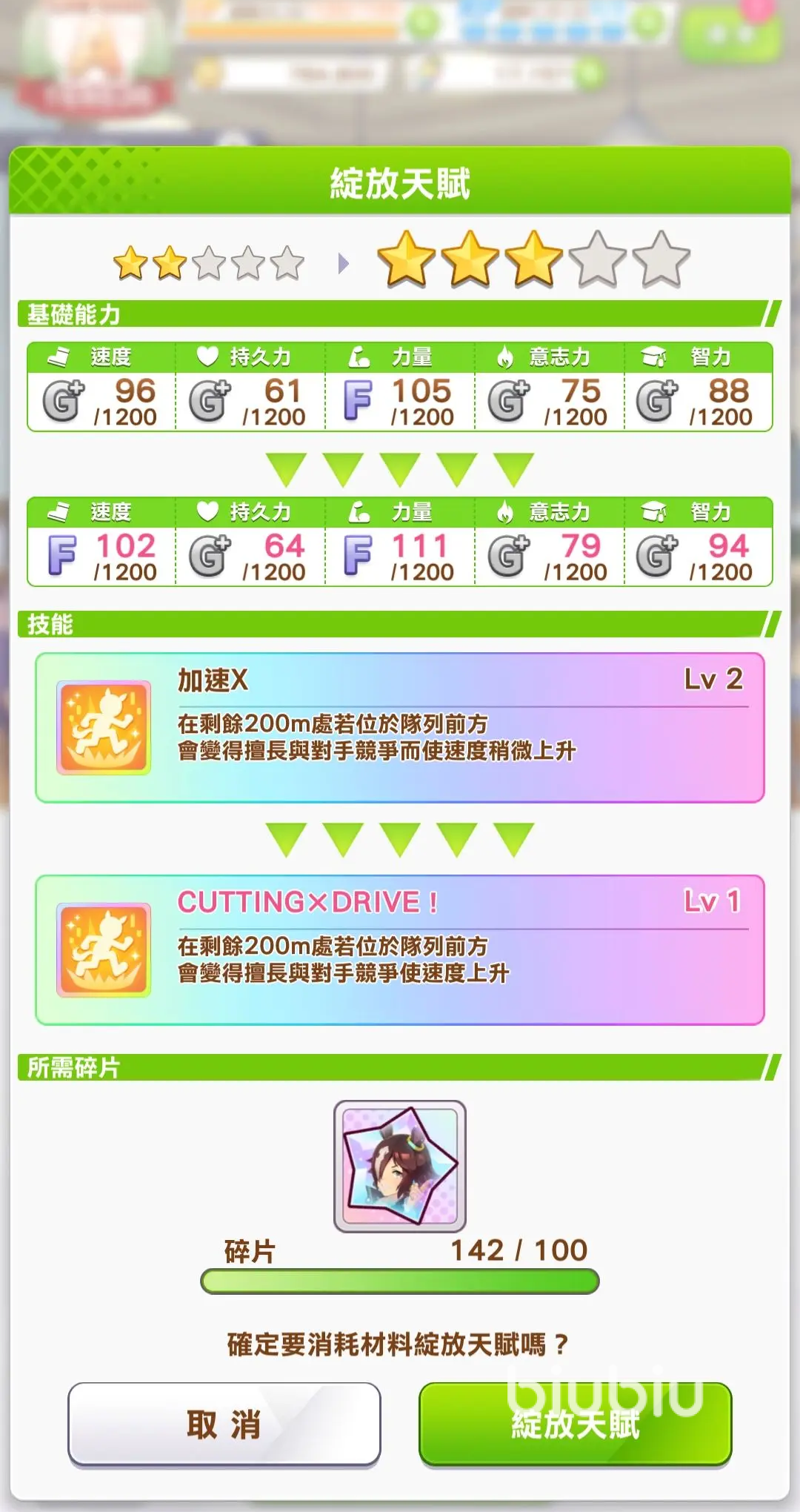 2、耐力属性不需要一味的往上加,根据自己比赛的距离来决定,只有这样才能分配更多的属性给其他位置。