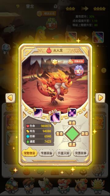 想要在荒古遗迹获得更多胜利的玩家,阵容当中必须使用到飞天蛙、鳄龙、朱雀、未羊、火人龙。这五名传说级别的宠物,组成了一个队伍之后,就可以轻松的击败荒古遗迹当中的任何敌人。