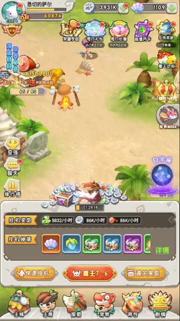 接下来还可以去探索模式当中进行战斗。在该模式下,玩家们可以通过挂机来获取5星符石,虽然概率较低,没有太多时间的时候可以利用起来。也可以直接与关卡当中的首领进行战斗来获取。