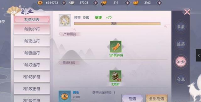 1,冶金:通常二阶的附就可以来卖钱了,在这里面最贵的是防护符和攻击符,1个约莫能卖到400---1500银,而且都只要赤铜矿跟秘银矿,意思就是采集到达四级就能做,效率非常高。固然级别越高卖的越贵,最贵卖到几千银的都有。