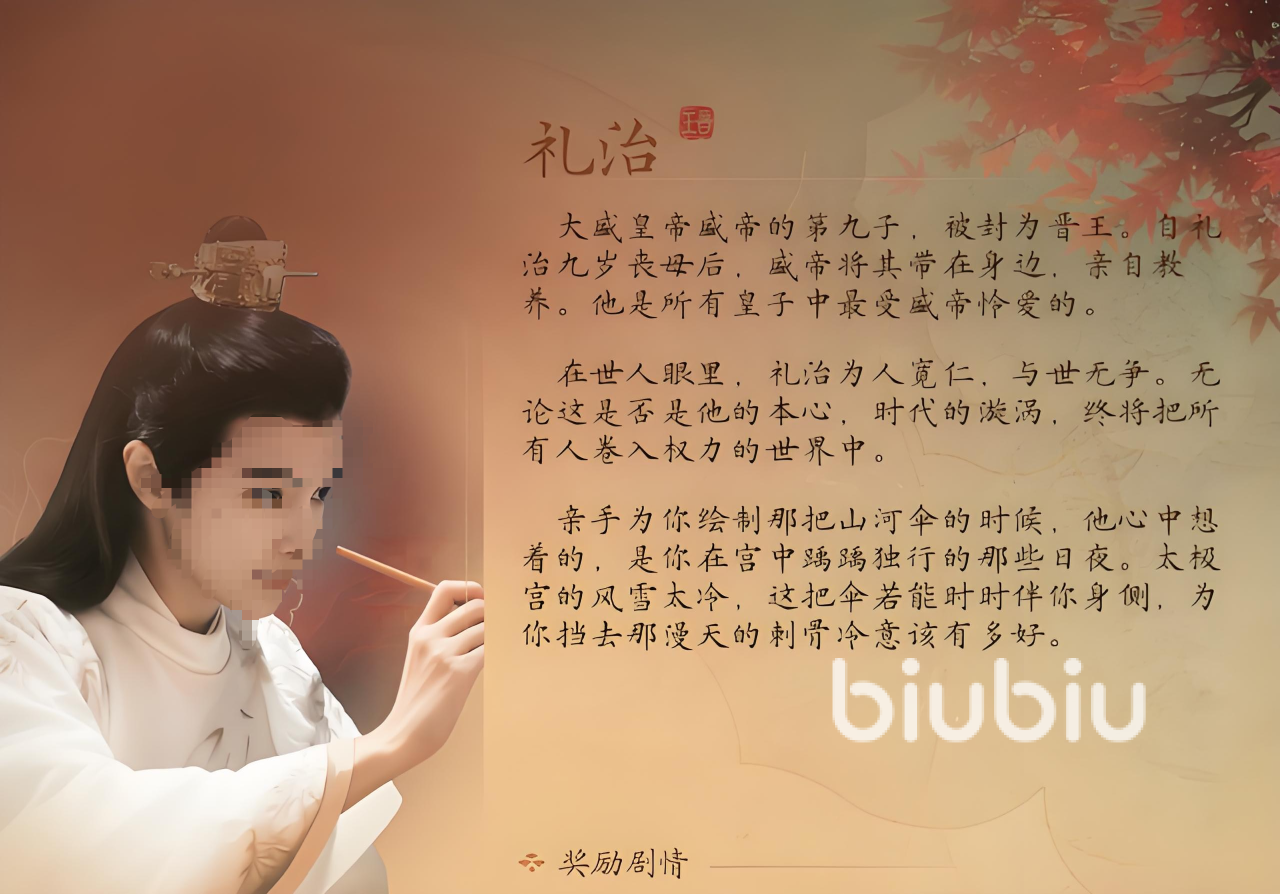 李治在9岁的时候母亲因病去世,可怜李治失去母亲,盛朝皇帝便将小小的他直接带在身边亲自照顾教养,也正因如此,李治成为了盛朝众多皇子中最被皇帝喜欢的皇子,在百姓和朝臣的眼中,李治是一个非常宽厚,且不喜欢和他人争夺的皇子,然而,不管这究竟是不是他的初心,可生于皇家的他依旧避免不了被卷入争权夺利的漩涡之中。