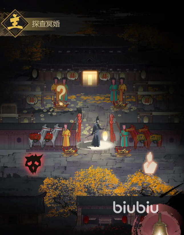 探查的第一个步骤便是前往案发现场,因为游戏中的案件通常发生在密室、古墓、灵堂、客栈等场景,玩家需根据任务指引前往对应地点。这里的场景以暗黑水墨风格呈现,细节丰富,需仔细搜索破碎器物、血迹、饰品等关键物证。