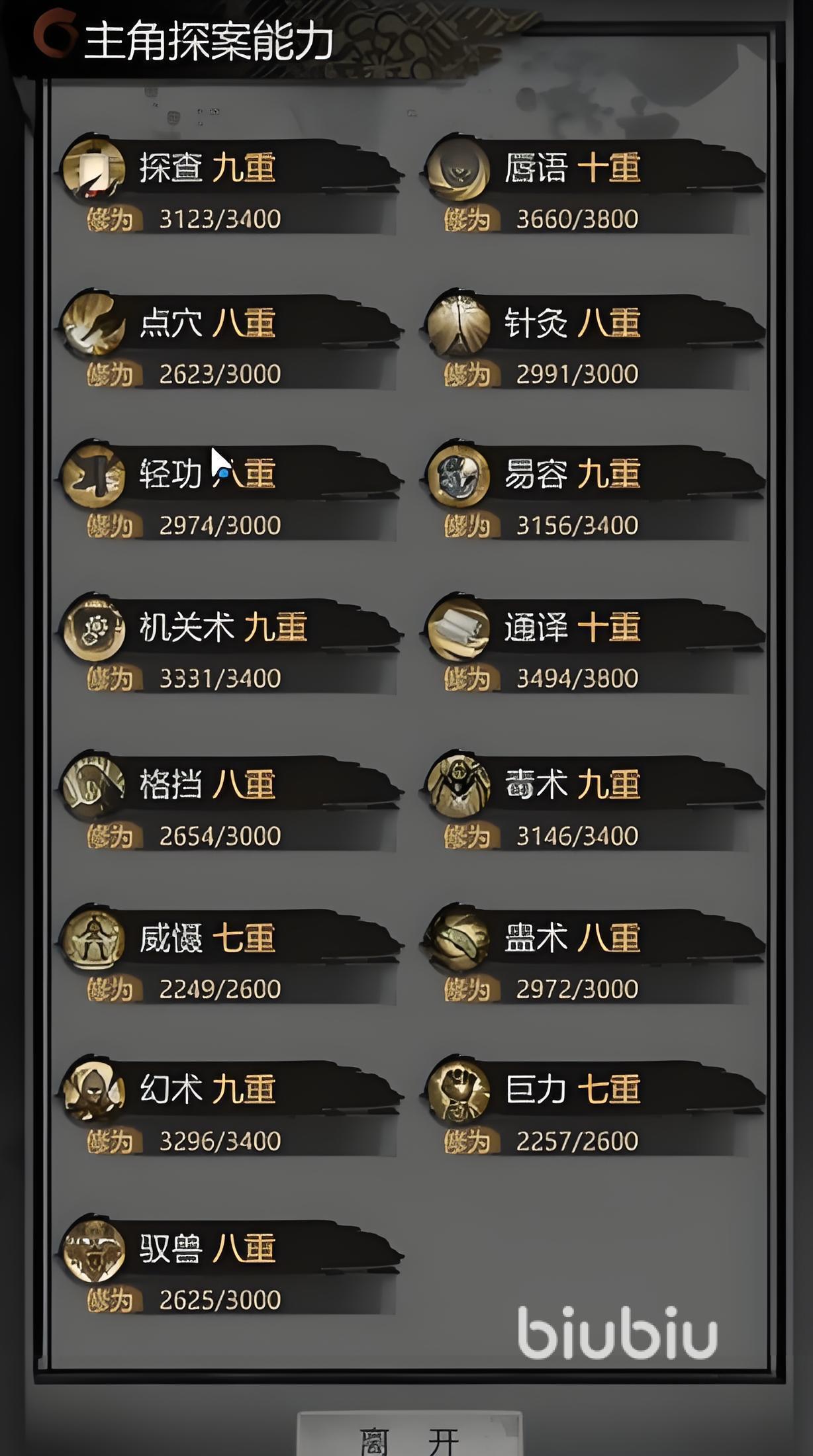 游戏中类似轻功这样的辅助查案的能力有非常多,同时每个功法有相关的等级,想要提升这些功法秘术的等级通过升级角色卡的等级来实现,玩家选择不同的职业角色上阵对战的话,会根据角色的探案能力来提升这些功法秘术。