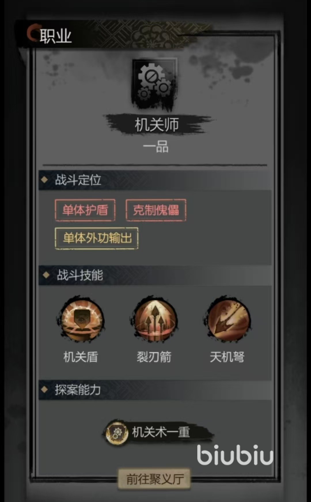 第2个剑客以外功输出为主,具备点穴能力。这里的剑客并不是脆皮,而具是具有一定的生存能力,可以对敌方进行单体输出和控制。第3个刺客,输出能力非常强大,单体战斗中优势明显,对于一些低血量的对手,甚至可以实现秒杀。技能效果方面具备了单体持续输出、流血、中毒等,需要玩家有较好的生存能力和操作能力发挥优势。第4个机关师,机关师是傀儡的克星,也是外攻输出能力非常不错的职业,在团队中可以发挥出全面的作用,是阵容中必须要携带的。