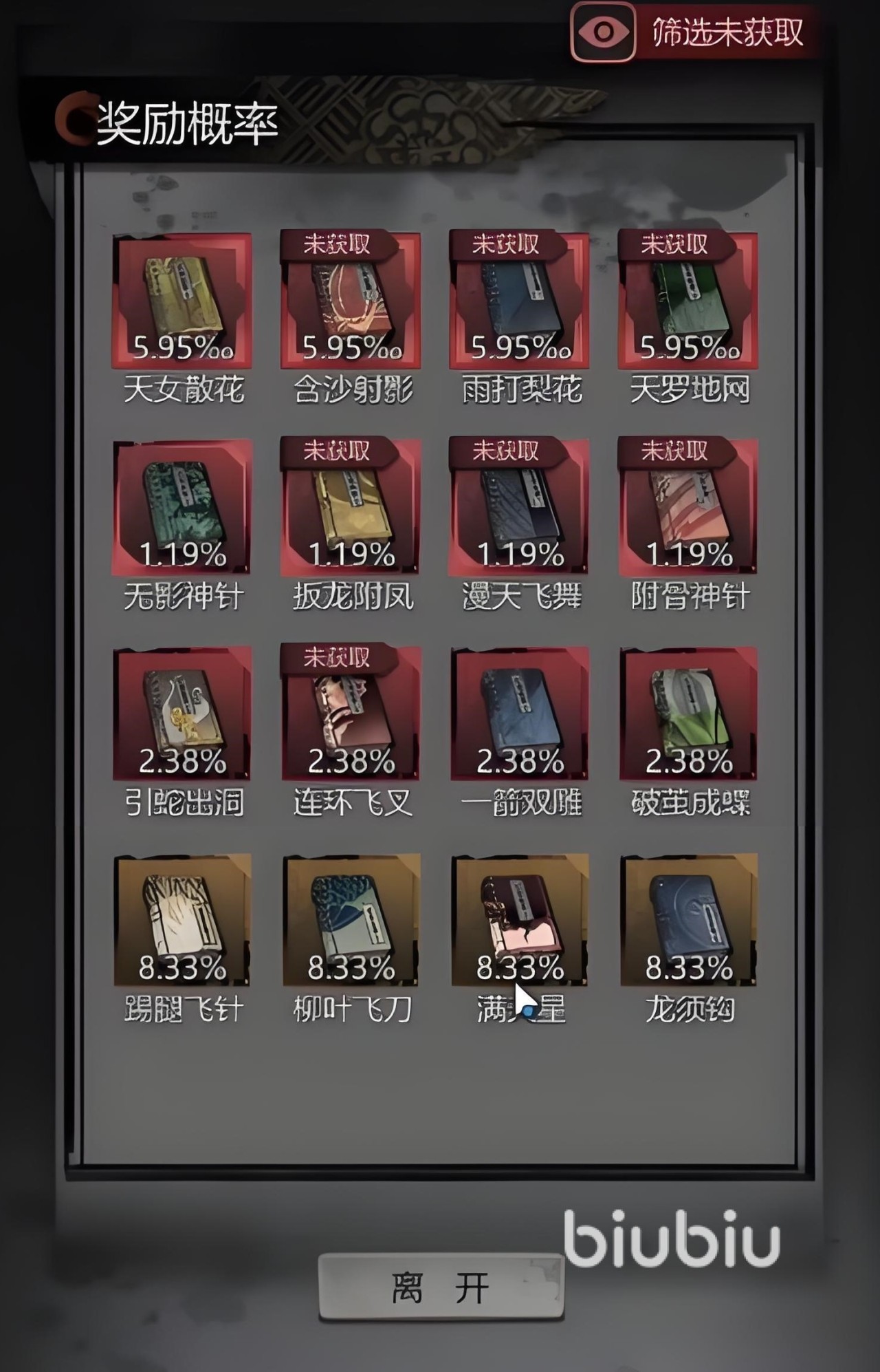 游戏中玩家能获得的秘籍内容通过藏书阁查看,其中红色品质的秘籍品质最高,金色次之,相对的红色品质的秘籍抽取概率最低。点击秘籍的详情能查看秘籍对于不同职业职业的加成效果。
