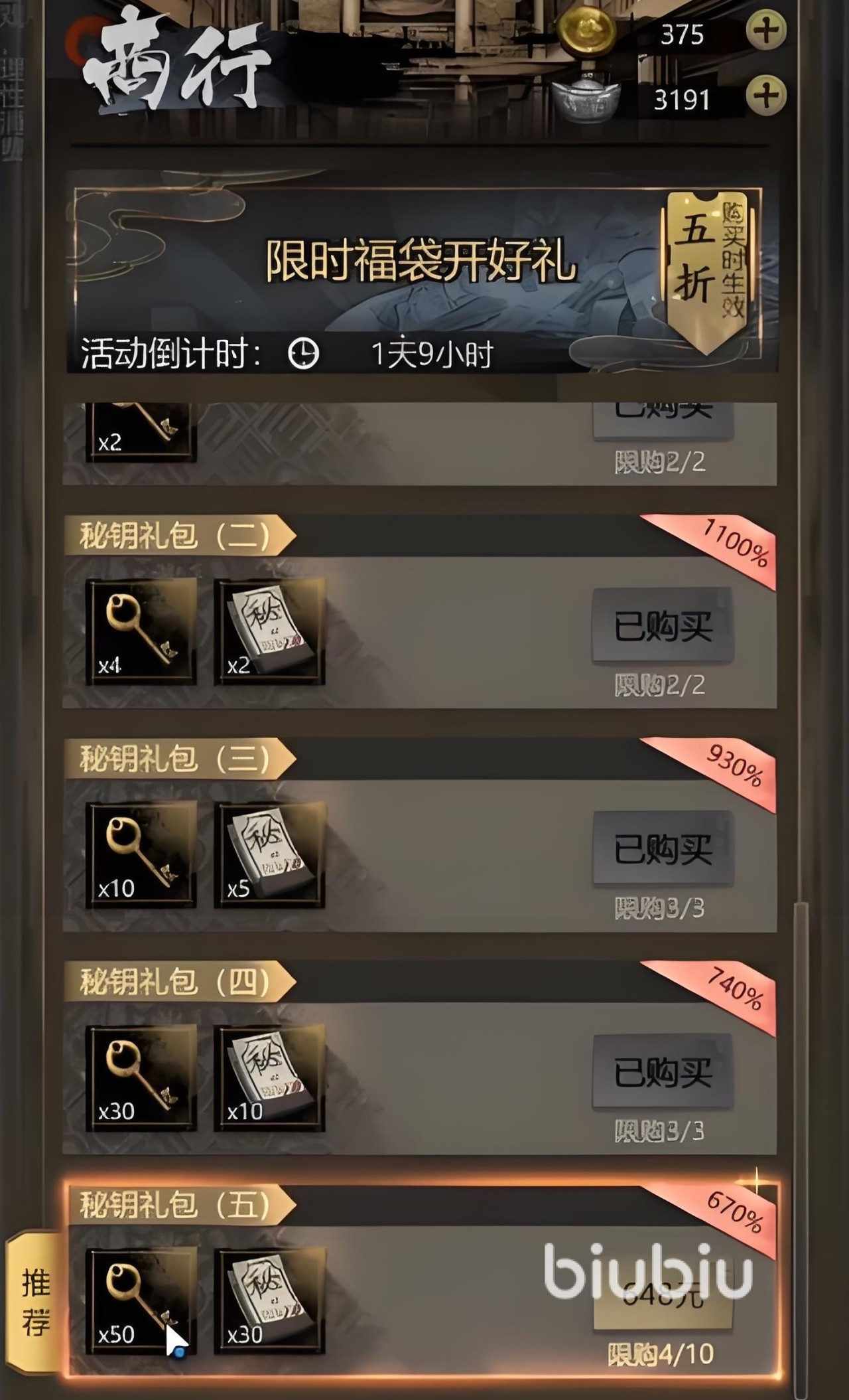 3、月卡/周卡赠送,充值成为月卡会员或周卡会员的话,在每日上线后可直接领取秘钥。4、商城购买。商城主要是游戏中主要的氪金点,关于秘钥礼包上有个选择,玩家可以需求来选择,同时注意购买秘钥礼包获得的秘籍兑换券的数量,后续可用于易物厅内高级秘籍的兑换。