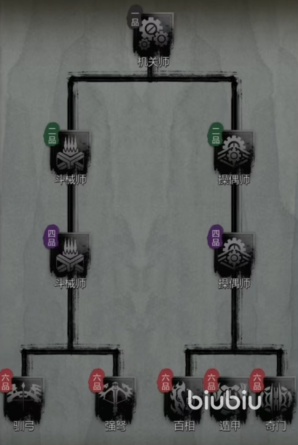 除了这些基础职业之外,每个职业还可以进行多次转职,包括转职成二品、四品和六品,在六品职业中也有一些强势的选项推荐给大家。主要包括驯弓机关师、济世药师、天道方士和百相机关师以及铜墙力士。其中驯弓机关师是目前物理职业输出的天花板级别角色,很适合用于清场。济世药师是奶妈中的典范,为团队提供高额续航保障。天道方士擅长法术aoe群体伤害。百相机关师则是多功能型的辅助。铜墙力士是游戏中的顶级坦克。