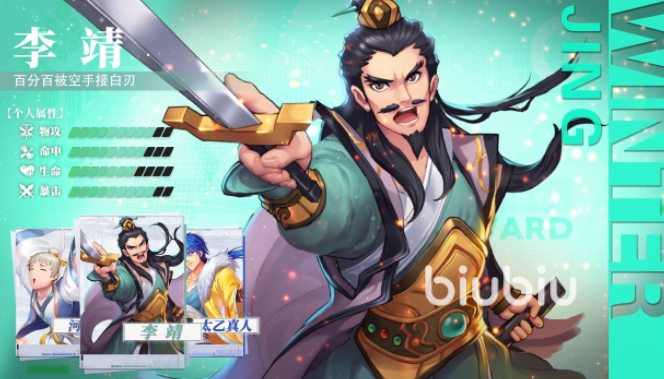 李靖在游戏内的定位绝对是输出,他的普攻拥有特化的效果,可以进行无限连击,是一个非常强大的输出型角色,也是玩家们一定要培养的一个前期角色。这个角色的专属武器是一把佩剑,从动漫中我们也是可以看出李靖的佩剑可以斩杀世间邪祟,实力非常的高强,而且这个角色物理攻击和暴击率都是比较高的,生命和命中效果稍稍差一些,但是这也不妨碍他在游戏内的战斗实力。