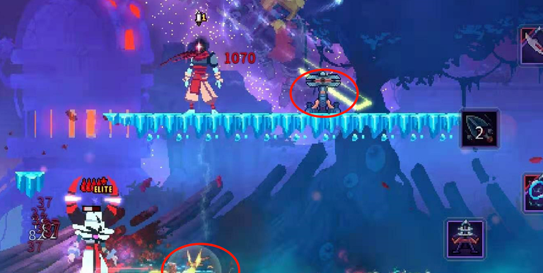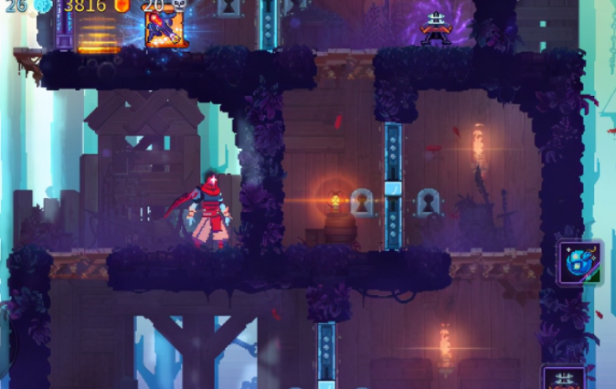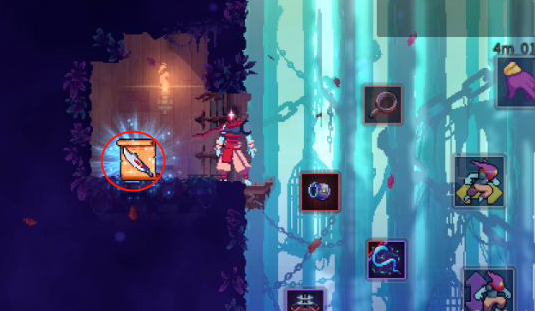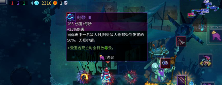 之后开启普通杀怪刷细胞通过关卡,通常情形下,有罪者的大道会有个选择装备之处,假如有圆斩箭塔或电鞭的话必须要拿此中1个,假如所述2个都没的话选择带紫色的,这儿有飞镖和冰冻手榴弹,由于携带电鞭的限定,小编就把手榴弹换为了冰冻手榴弹。