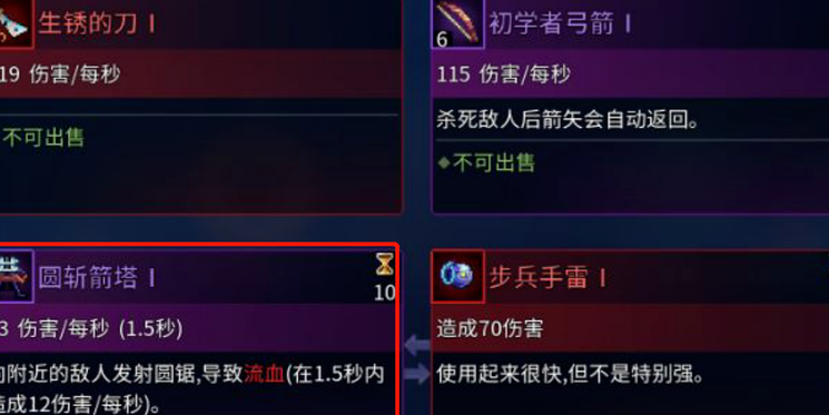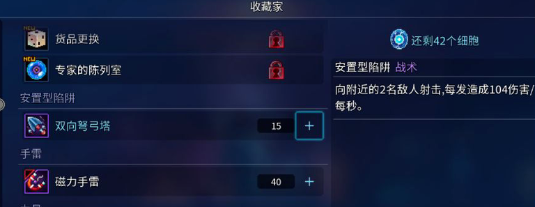 以后借助耗费15细胞解锁双向弩弓塔得到双向弩弓塔,至此,开场装备都已预备好,紧接着只要根据这类装备选择更强的装备便可。