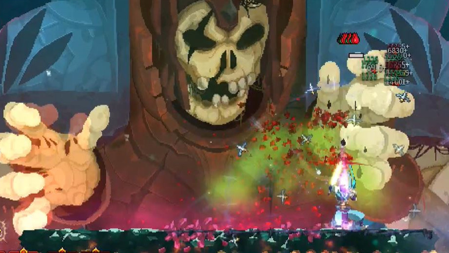四细胞巨人是比较厉害的,体型非常巨大,当巨人的手悬空时,玩家只能打手。期间,手还会挥掌。这招伤害有点大,玩家需要跳跃躲避。手还会捏成拳头放在地上,这时候,玩家要立马跳到拳头上,打巨人的头。