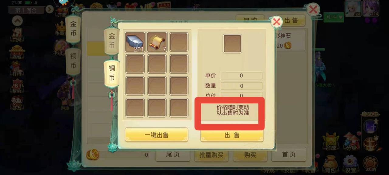 出售呢,也就是它的表面意思,出售自己的的物品来兑换金币,但是出售的物品的价格不是固定不变的,而是以出售时获得的价格为准,有金币就有铜币,玩家不仅可以兑换金币,也可以兑换铜币,价格也是和金币一样不是固定的。