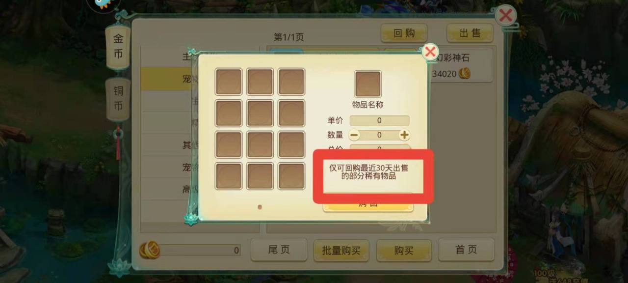 在交易界面里面,玩家可以看到有回购和出售四个字,回购,顾名思义就算买够之前出售的的物品,但是只能回购最近30天出售的部分稀有物品,”部分“就充分说明玩家出售的物品就不能完全重新购买回来,只能购买部分稀有物品。