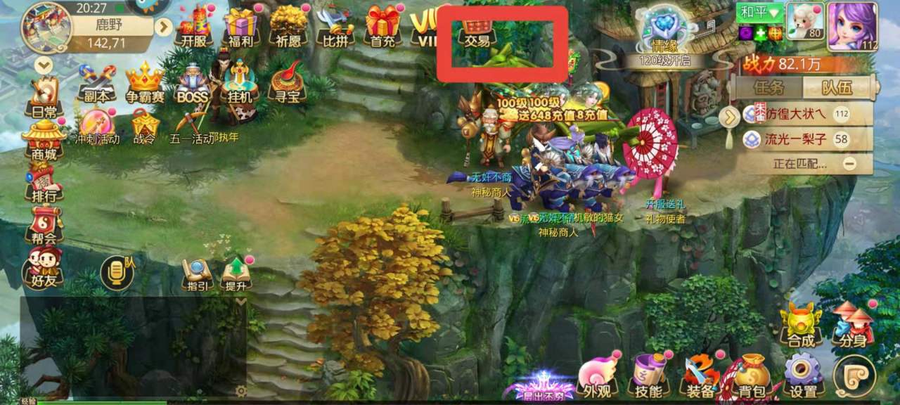 首先,需要玩家的游戏的等级达到一定的时,才会开启“交易“这个功能系统。
