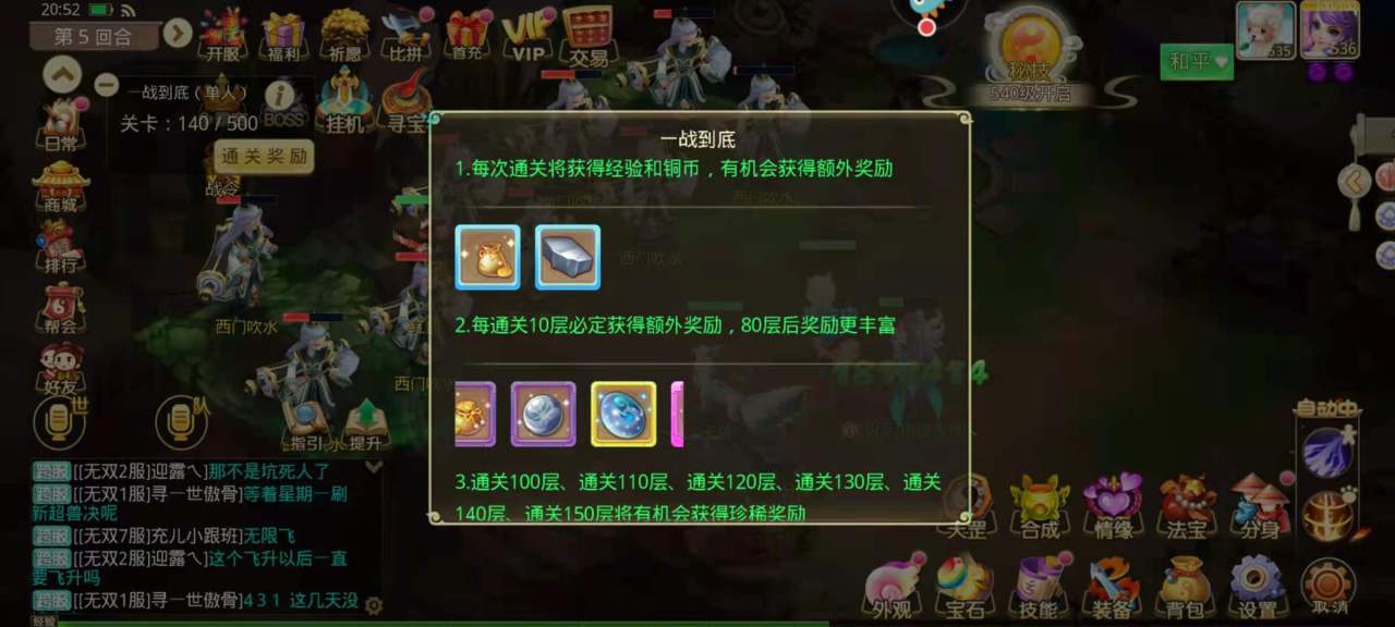 其实每通过一层,都会有不同的奖励,但是都会获得经验和铜币,等玩家开启“日常“这个功能系统之后,能参加”一战到底“的活动时,对里面的奖励就会一目了然了。