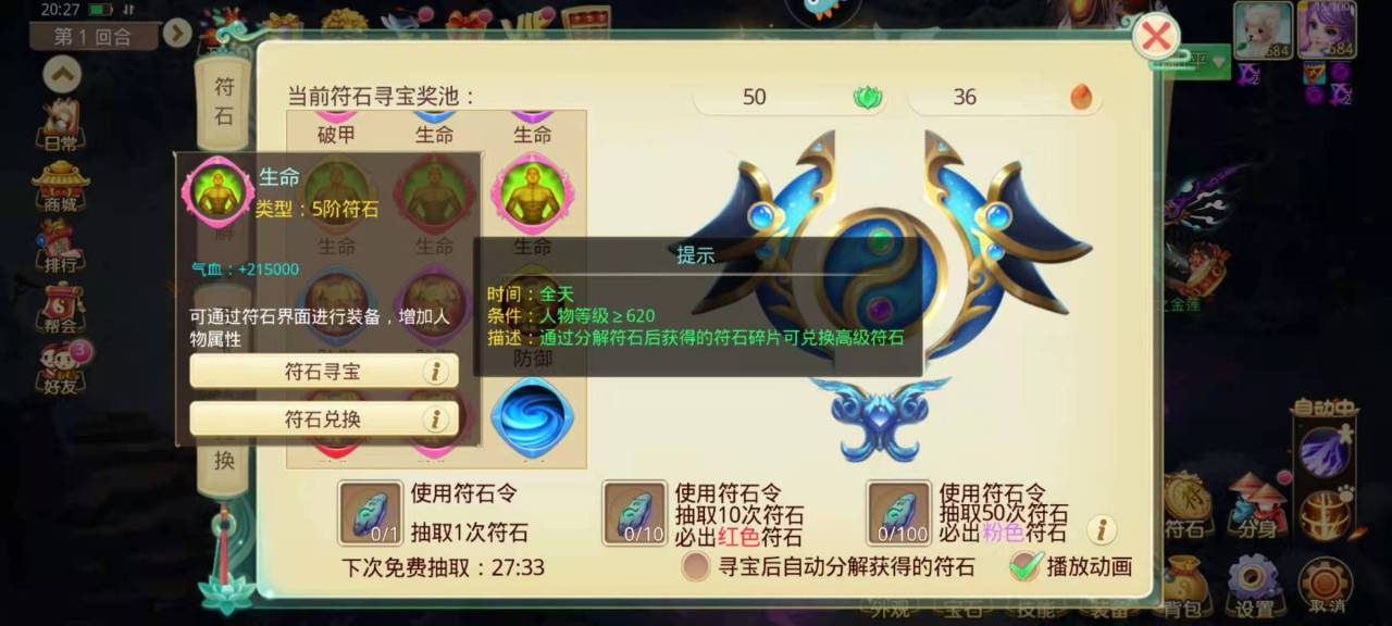 要想通过符石寻宝来获取符石,那就先要在商城里边获得符石令,符石令是用来抽取符石的。