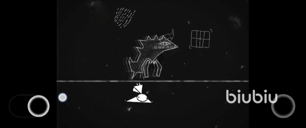 经过一段黑白色,类似梦境的可互动过场后,来到第二个场景,往左和往右走会分别会触发黑红色边界的上升下沉,来到最上方碰到菱形方块后,通过不断控制左右,调整高度来到右下方的方块。