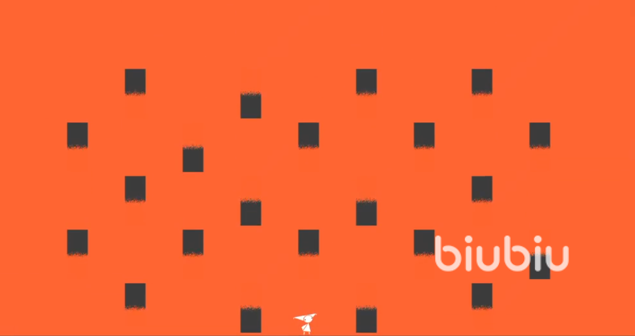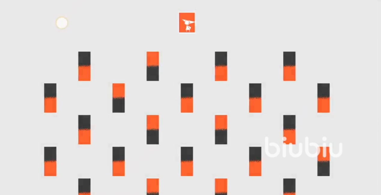 游戏第五关会有个形式上的改变,玩家从横向跳跃,变成了类似纵向爬塔的玩法,第一个场景是狭长的,玩家需要记住每次跳跃后,红色和黑色平台的位置,爬到顶端后就可以进入第二个场景。