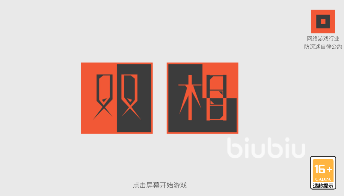 在游戏里经过几个画面转场后,会进入到游戏的主界面,主界面不靠直接点击,而是在四个角落那里分别有白黑对应的功能键,左上角是设置,右上角是退出,左下角是关于游戏背景,右下角才是开始游戏。