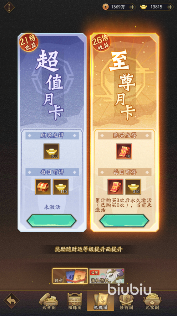 此处主要的还是去做主线任务了,这个是必要进行的,基本可以拿到的数量也不会太少。如果你们有一定经济实力的话,可以尝试去购买此处的月卡,那个购买之后每天都能够领取到额外的数量的元宝。