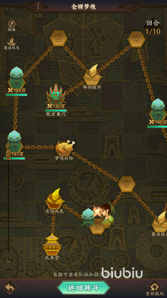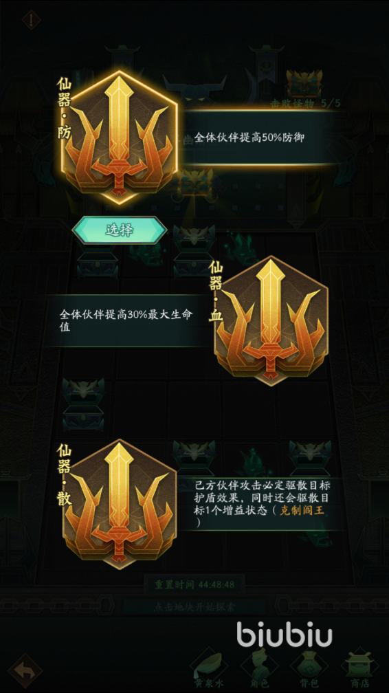 这个副本是每两天刷新一次的,通关能够获得随机的伙伴、幽冥币以及碎片材料等,奖励是非常丰富的,小伙伴们可以点击地图上发光的格子,从而一步步移动到宝箱附近,领取完所有的宝箱,能够获得不少buff和奖励。