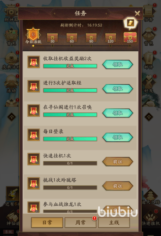 首先登录游戏之后就能够领取到大量的挂机奖励,挂机奖励是只要离线状态就能够源源不断的获得大量的奖励的,小伙伴们自然能够领取到大量的奖励了,其中有不少元宝的哦!