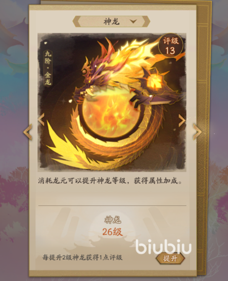 提升神龙等级也是可以增加养成模块的等级哦,每提升两级神龙等级就会获得1点养成评级,这一个方法就稍微的需要大家注意了,因为花费的资源要比上面那些方式都要多一点,精力比较多的小伙伴再进行考虑哦,大家如果针对神仙道3养成模块还有什么其他问题的话也可以在九游内进行搜索哦。