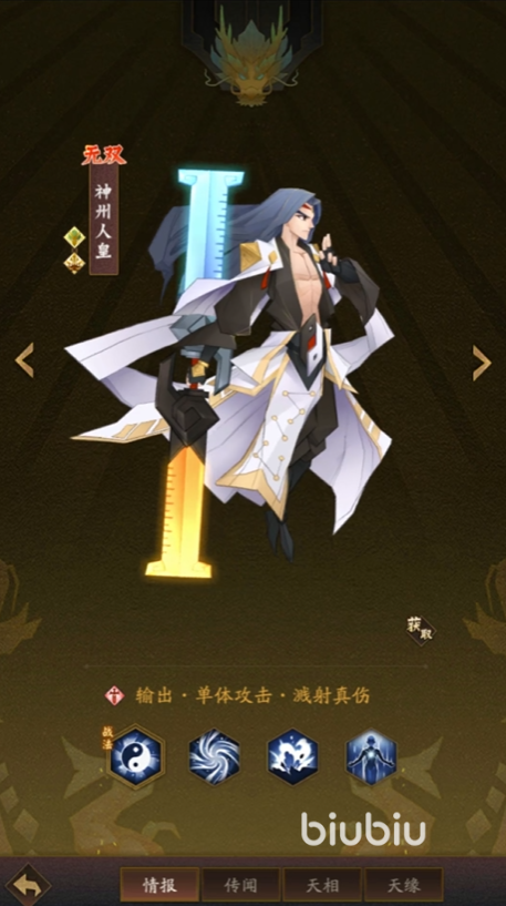 如果还想要进一步加强队伍单体攻击能力的话,小编则建议大家选择神州人皇。此角色和杨戬的战斗能力相似,同时也可以互相配合去专门攻击敌人的主力输出,对方基本上无法撑过两个角色轮番攻击超过三个回合,适用于专门去打击一些高难度的BOSS副本。