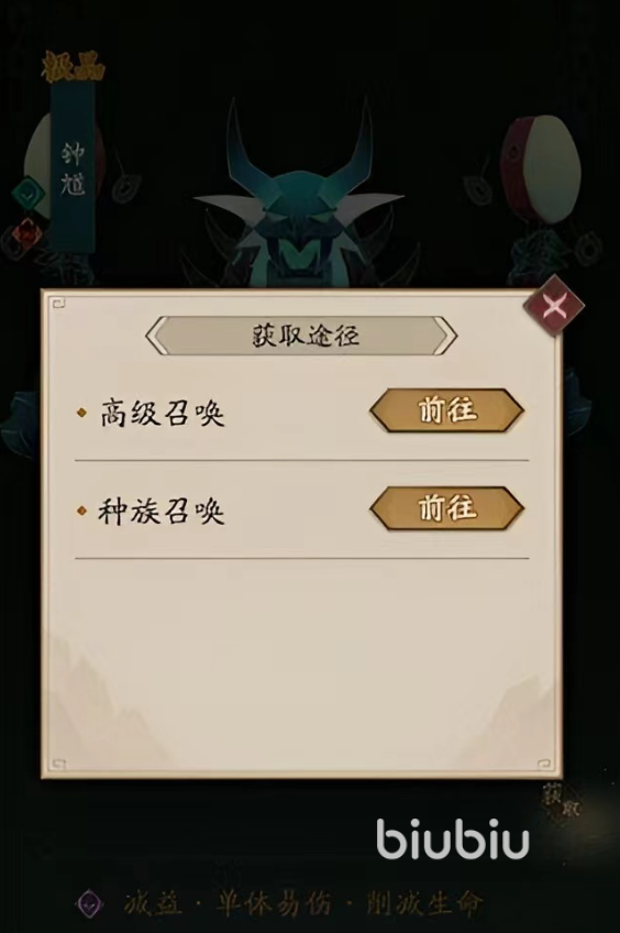 首先,最简单的一种获取方式,就是推荐大家使用种族召唤了。此召唤可以直接特性选择一个种族来获取相关英雄,从而来提升大家获取钟馗的概率。不过缺点则是对道具的要求较高,目前能够获取种族召唤卷轴的副本较少,对于普通玩家不太友好。