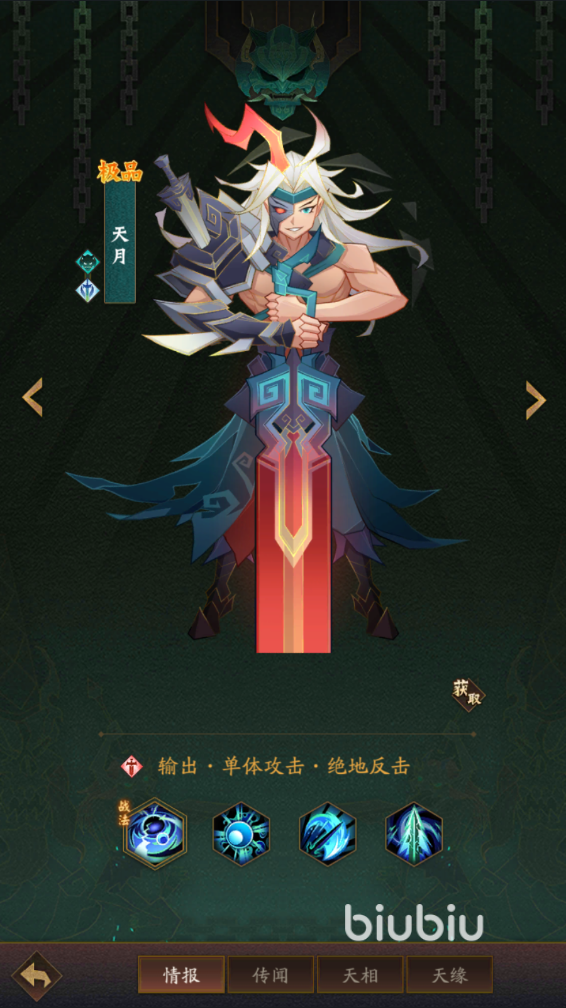 这个游戏中的强势角色有很多,这里就着重推荐其中的几位更为厉害的人物。首个要讲的是天月,他有着很强的输出能力。他的大招还是以单体伤害为主,主要的效果是会消耗自身3/10的血量,来攻击对方一名角色。