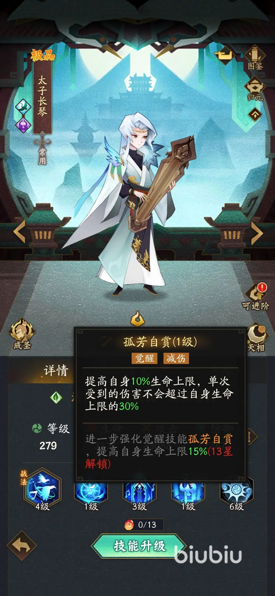 此游中的人员技能都是固定的几个,其中的战法就是各位熟悉的大招了,基本它也是这个人物的主要能力,而太子长琴的大招效果是弹琴,他会通过这个来召唤出灵鸟,而这些鸟会对敌方人员发动攻击,这个技能还会有一定的特殊性。